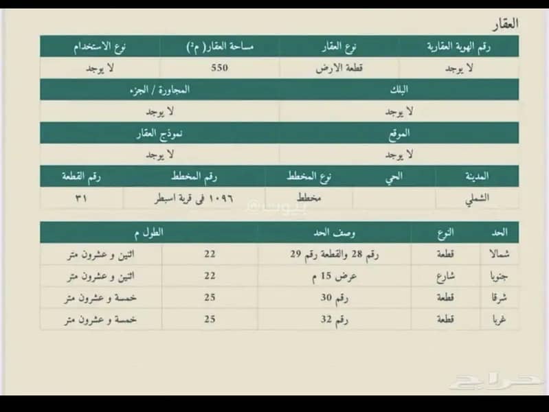 The location is fetched and verified by REGALocation Description as per Deed:قطعة الارض رقم 31 من المخطط رقم 1096 فى قرية اسبطر محافظة الشملي .