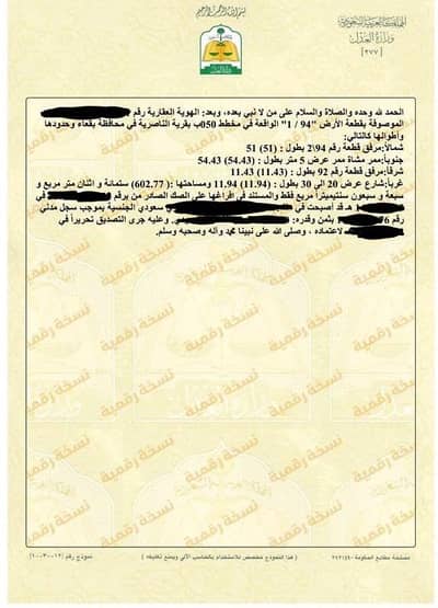 The location is fetched and verified by REGALocation Description as per Deed:الهوية العقارية رقم 6222120795520001 الموصوفة بقطعة الأرض "94 / 1" الواقعة في مخطط 050ب بقرية الناصرية في محافظة بقعاء