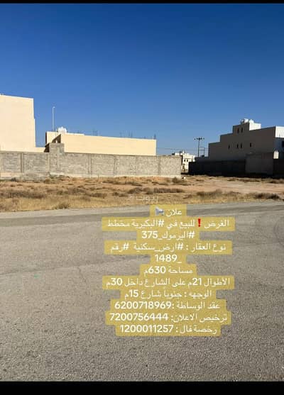 Discover a prime opportunity to invest in a residential land plot situated in the heart of Al Qadisiya, Al Bukayriyah. This land covers an area of 630 square meters, ideally poised for residential development. The property is classified under the main land use type as 'سكني' (residential), making it a perfect option for those looking to build their dream home or to invest in a growing community.