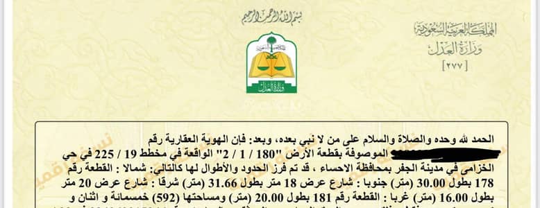 For Sale | Land in Al-Ahsa - Al-Jafr Al-Khuzama District -
