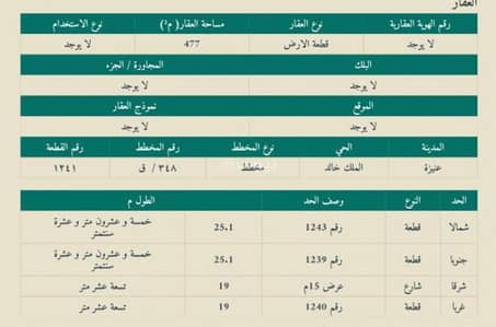 Residential land for sale in the King Khalid neighborhood in Unaizah