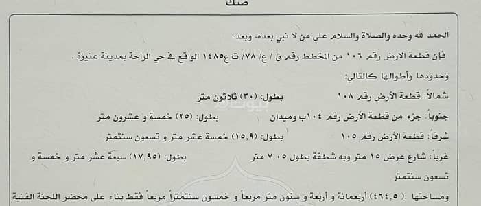 The location is fetched and verified by REGALocation Description as per Deed:حي الراحة بمدينة عنيزة .
