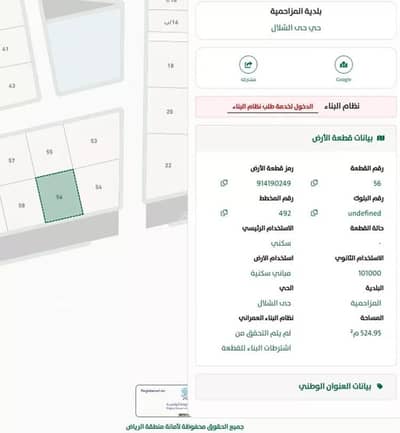 The location is fetched and verified by REGALocation Description as per Deed:قطعة الأرض السكنية رقم 56 من المخطط رقم 492 محافظة المزاحمية .