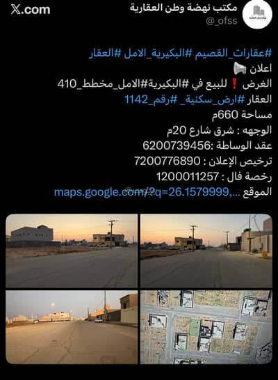 The location is fetched and verified by REGALocation Description as per Deed:قطعة الأرض السكنية رقم 1142 من المخطط رقم 410 / ق الواقع فى شمال محافظة البكيرية .