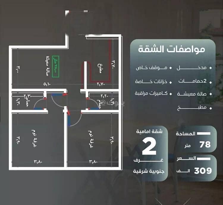 Additionally, this apartment is being offered at a competitive price of 309,000 SAR, providing a valuable investment opportunity in a thriving neighborhood.