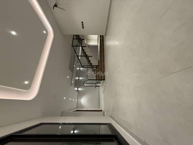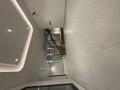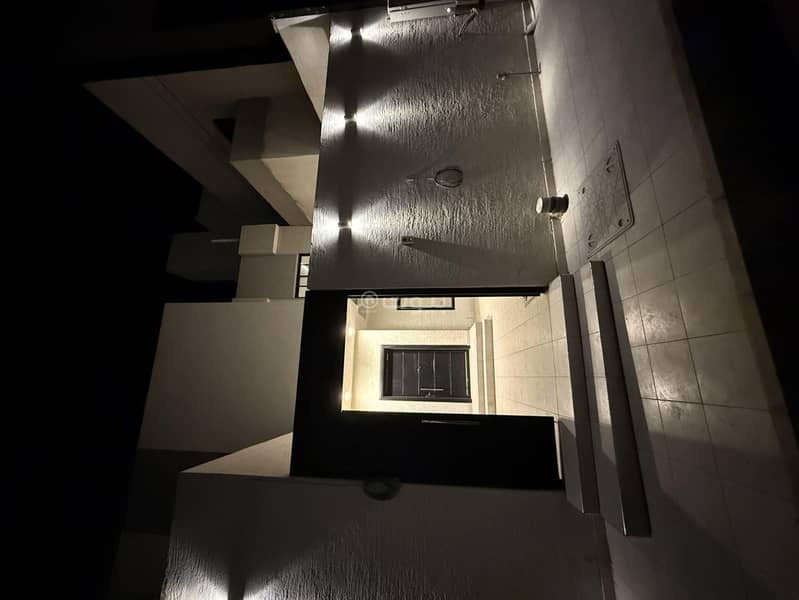 The ground floor has a yard and a men’s majlis with a bathroom, and an open women’s majlis leading to a large second living room, a laundry room, and a bathroom serving the living room. At the back, there is a maid’s room with a bathroom.