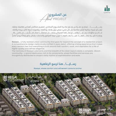 A 3-bedroom apartment for sale in the Rasiya project, in Al-Ula Hills scheme, in the Al-Ohur South neighborhood.