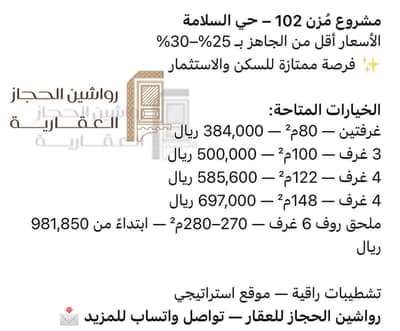 Apartments under construction in Al-Salamah neighborhood, investment and residential, two bedrooms and a living room.
