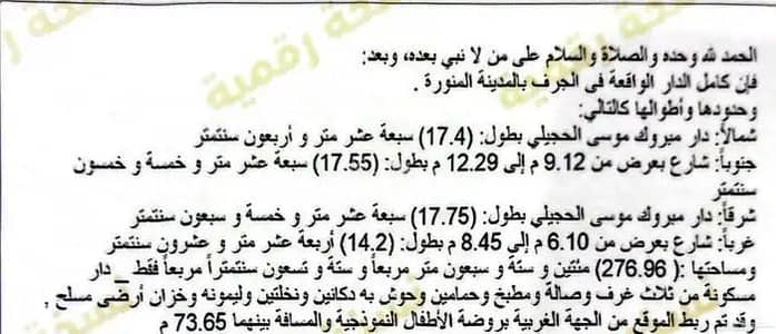 The location is fetched and verified by REGALocation Description as per Deed:كامل الدار الواقعة فى الجرف بالمدينة المنورة .