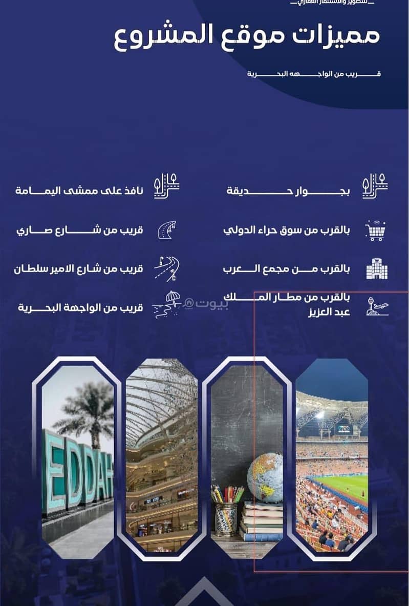 An investment opportunity suitable for living in Al-Salama neighborhood with a distinctive location at a corner of a commercial street and overlooking a garden on Abdulrahman Al-Sudairy Street. A prime location with all services around you. __ Under construction