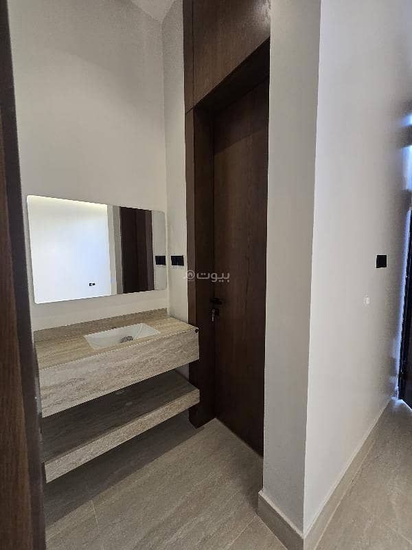 Duplex villa with an area of 200 square meters, 15-meter street, eastern facade. Men's council with sinks. Dining area, living room, kitchen with storage. The first floor has 3 bedrooms, including one master and two with a shared bathroom.