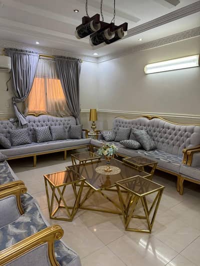For rent: ground floor in Al-Qadisiyah neighborhood: living room, dining room, three bedrooms, three bathrooms, external majlis, yard, installed air conditioners, central gas, free gas, free water, only the electricity bill is on the tenant.