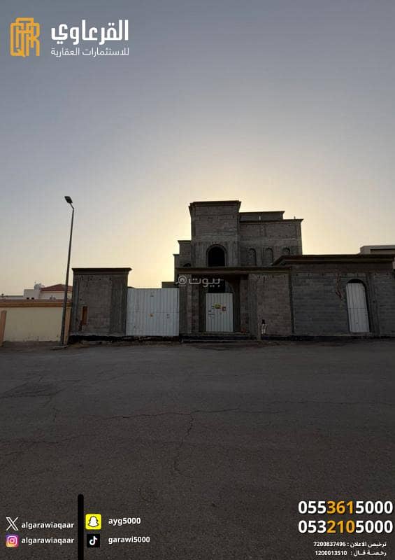Golden opportunity for sale a villa in Al Quds neighborhood in Unayzah. The villa is a personal construction with very high quality execution by (Tanasuq Contracting) using volcanic insulated blocks and 450 resistant concrete. The area is 537 m² with a built-up area of 650 m² consisting of two and a half floors.