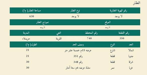 The location is fetched and verified by REGALocation Description as per Deed:قطعة الأرض السكنية رقم 350 من المخطط رقم 740 بمركز القرينة .