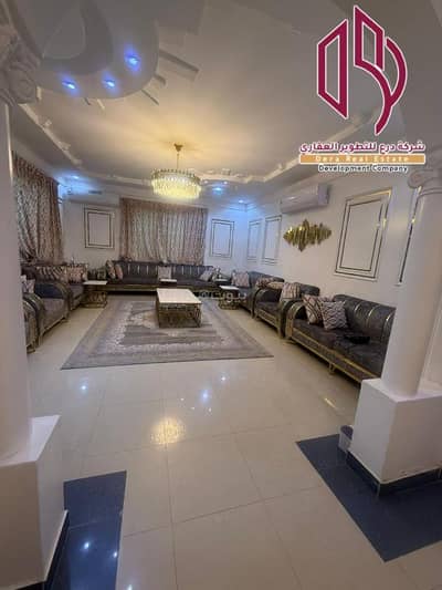 - Ground floor: small yard, garden, tent, large majlis, bathroom, reception lounge, living room, kitchen, lounge, bedroom, and bathroom.
