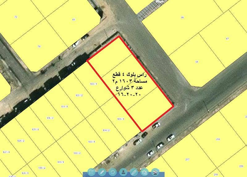 Ras Bulk 4 plots for sale in Aseer Al-Shamaliyah, behind Al-Batraagi College, next to Velvet Residence project. Total area 1603 square meters (facade with 3 streets): South 20, East 20, North 16. Sale price net 7 million. Sales of all four plots together.
