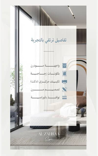 A residential apartment consisting of 3 rooms for living or investment for sale in Al-Zahra neighborhood in Al-Zahra Sign project.