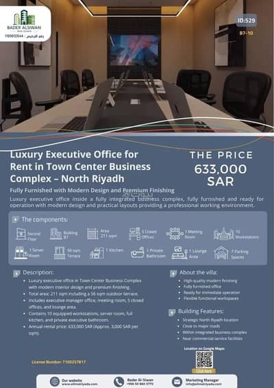 Luxury Executive Office for RentLocated in Town Center Business Complex – North Riyadh