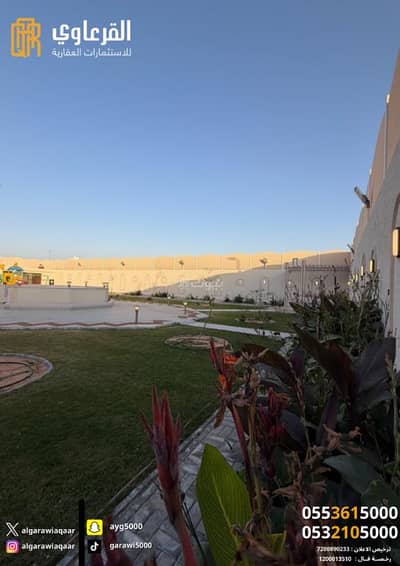 For sale: A luxurious villa with a very spacious shaded area in the southern part of Unayzah (Unaiza) Al-Hamra district, on an area of 2,155 square meters. Built-up area is 1,061 square meters. It faces south onto a 15-meter street and west onto a 15-meter street. It includes outdoor seating with a swimming pool, nine master bedrooms, a maid's room with a laundry room. Three lounges, two kitchens. A worker's room with a bathroom. All guarantees are available: 1/ Plumbing guarantee. 2/ Electrical guarantee. 3/ Waterproofing certificate. 4/ Soil test. 5/ Cooperative Insurance. 6/ Engineering supervision. For more details: 0553615000 - 0532105000