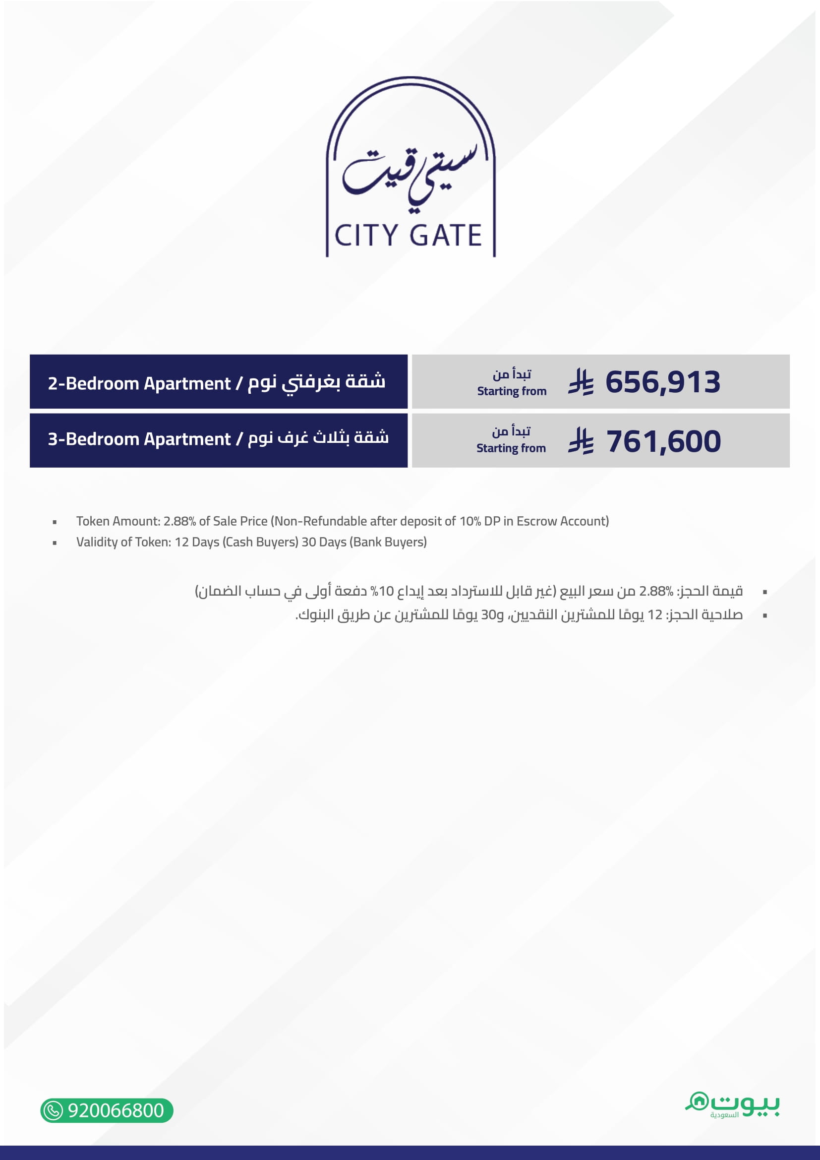 تقسم مراحل البيع لمشروع "سيتي قيت" على مرحلتين، مما يجعله مثاليًا لكل من المشترين والمستثمرين: