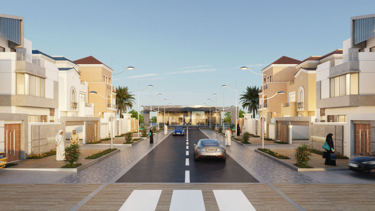 - يقع ضمن مدينة المستقبل التي تمتد على مساحة 5.1 مليون متر مربع وتضم أكثر من 4,415 وحدة سكنية