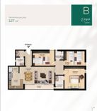 نموذج B: 127 متر مربع ومكون من: صالة، غرفة طعام، مطبخ، غرفتين نوم، غرفة ماستر، 3 دورات مياه، تراس