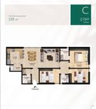 نموذج C: 135 متر مربع ومكون من: صالة، غرفة طعام، مطبخ، غرفتين نوم، غرفة ماستر، 3 دورات مياه، غرفة غسيل