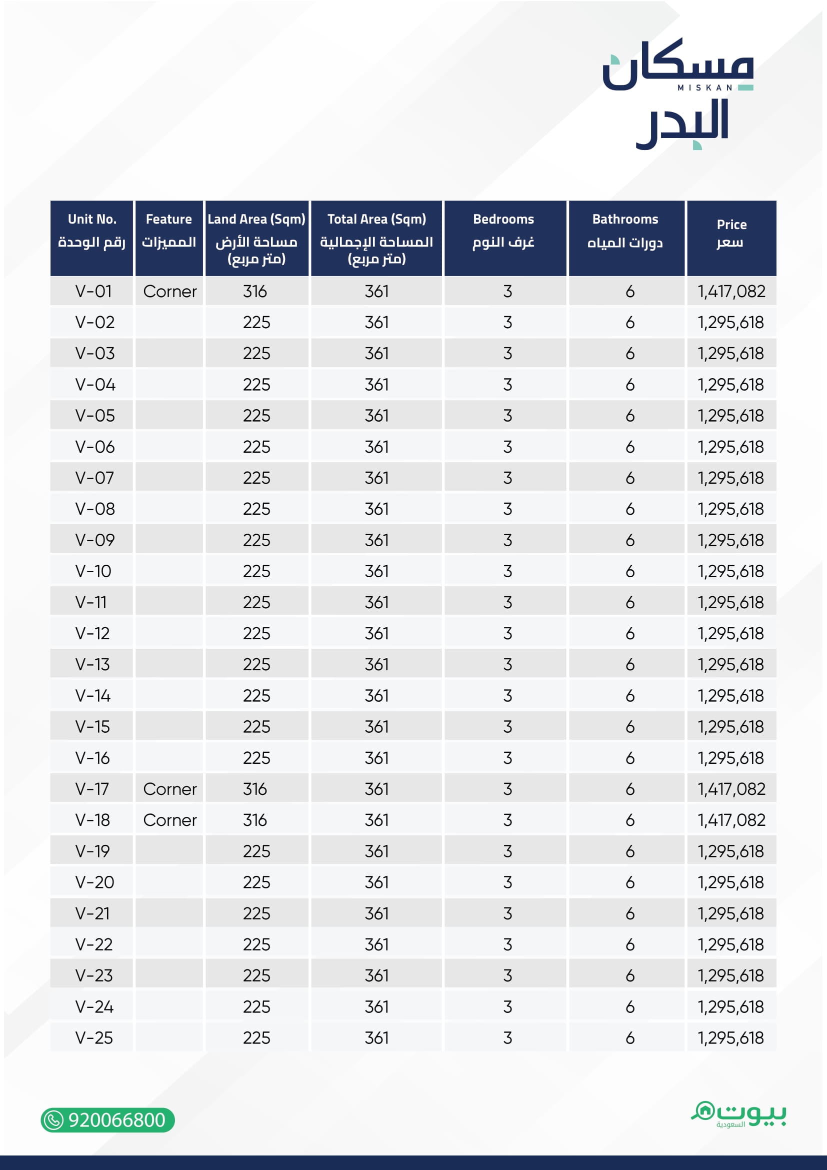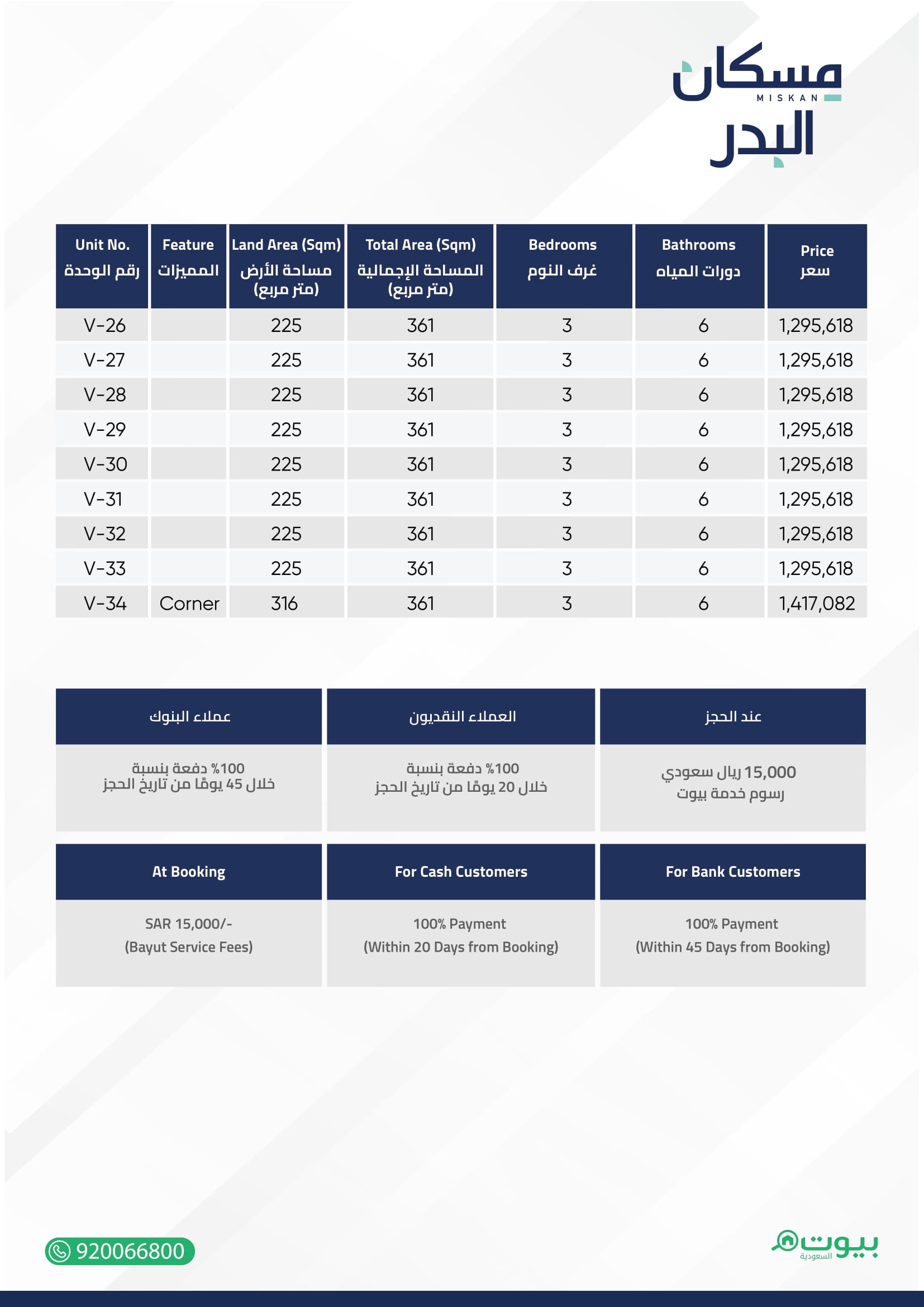 يُعد مسكان البدر مجتمعًا سكنيًا متكاملاً يضم 34 فيلا عصرية، ويقع في حي البدر الحيوي جنوب مدينة الرياض. تم تصميم هذه الفلل لمن يقدّرون الخصوصية والراحة والأمان، حيث تتراوح مساحاتها بين 225 م² و323 م² مع مخططات متنوعة تناسب احتياجات مختلف العائلات.