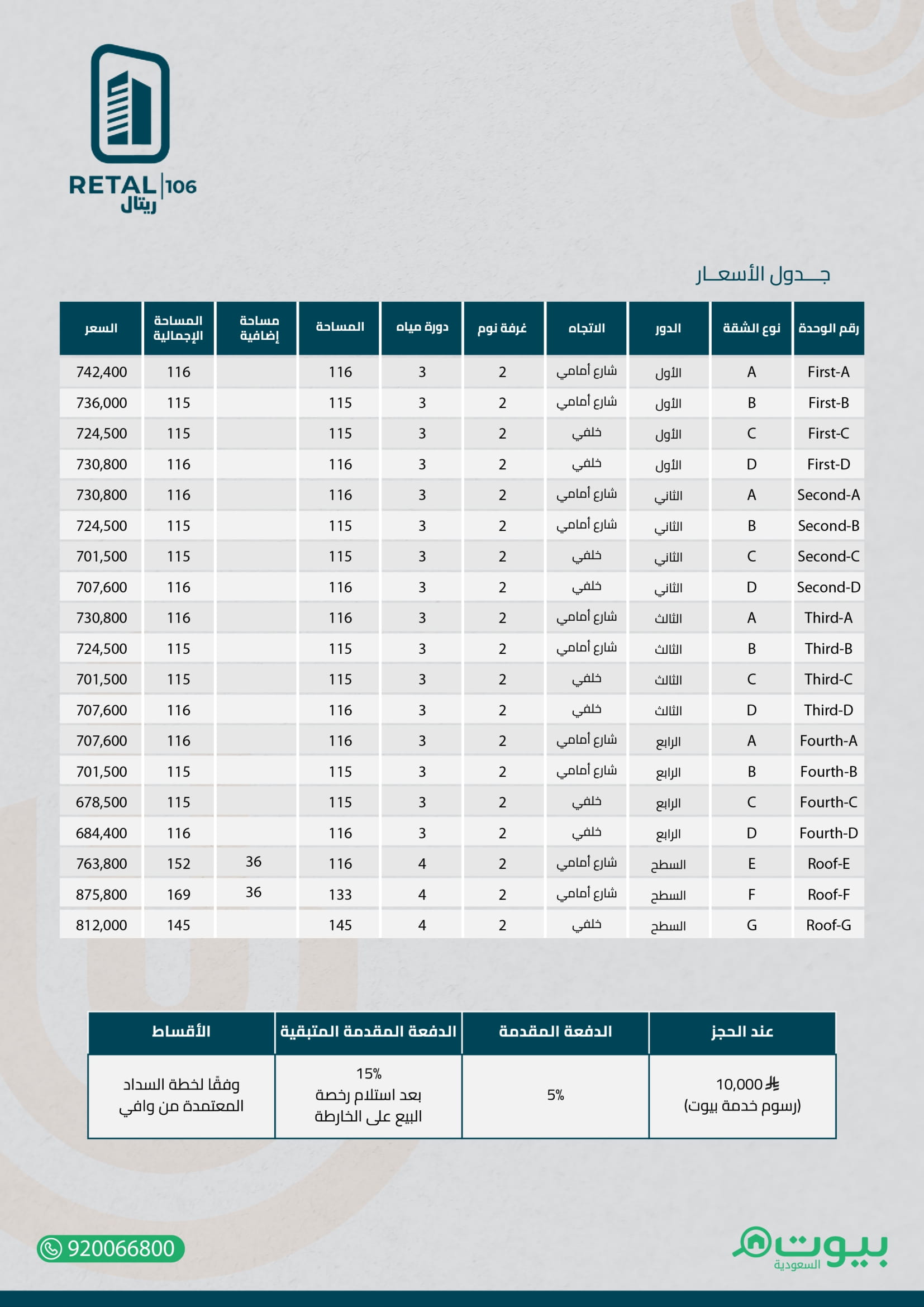 بُني ريتال 106 بتركيز على الفخامة والأمان والتكنولوجيا الذكية، ليضمن نمط حياة يلبي احتياجات العائلة العصرية والمستثمرين المميزين. بإطلالاته البانورامية، وتشطيباته الراقية، وموقعه المتميز، يمثل المشروع فرصة واعدة في سوق جدة العقاري المتنامي.