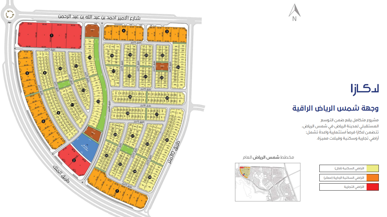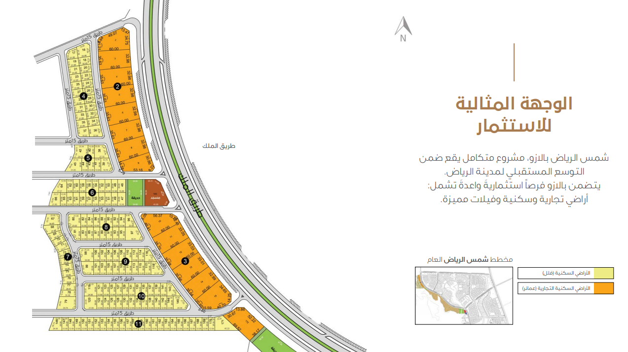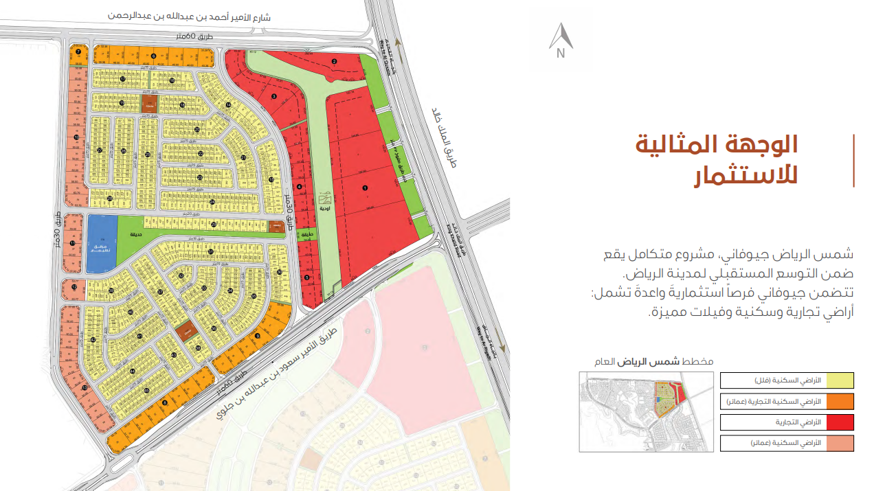 شمس الرياض مشروع تطوير حضري متكامل يمتد على مساحة تتجاوز 3.5 ملايين متر مربع، يوفر أراضٍ تجارية وأراضٍ تجارية سكنية وبنية تحتية حديثة ومرافق عائلية.